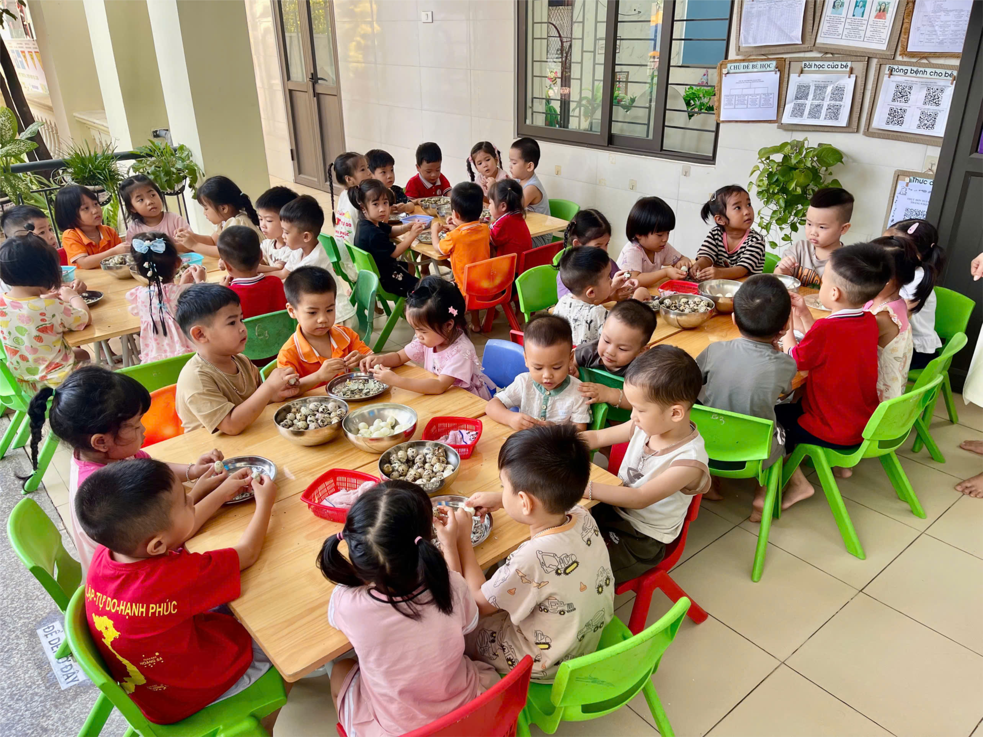 Qua hoạt động, trẻ được rèn sự khéo léo của đôi tay, học cách kiên nhẫn và cẩn thận trong từng bước làm. Đồng thời, các bé còn có cơ hội trải nghiệm niềm vui khi tự mình hoàn thành công việc nhỏ bé và được thưởng thức thành quả. Trải nghiệm bóc trứng cút không chỉ giúp trẻ phát triển kỹ năng vận động tinh mà còn nuôi dưỡng tính tự lập và sự hứng khởi trong học tập.